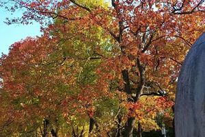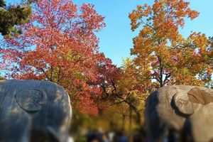 每到深秋,神道两旁的榉树,枫香,乌桕,圆柏就像被打翻的 调色盘,色彩艳丽明晰,优雅而迷人。