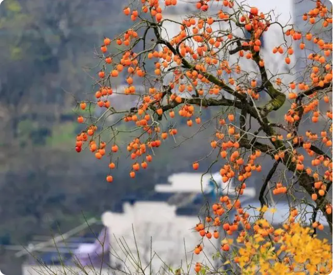 柿子红了,秋景熟了,独属皖南的秋日风光就成了摄影爱好者的天堂。树干嶙峋,树枝虬劲,弯弯曲曲,枝头挂满一颗颗通红的柿子,鲜红透亮,颗粒饱满,在阳光下分外亮眼。
