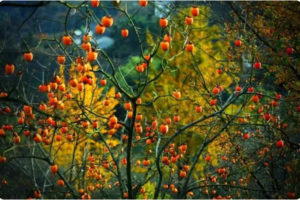 歙县上丰乡境内,花果山半山腰间,即当地人俗称的姬公尖。海拔700米,地处高山,一年四季无霜。数棵几百年、几十年树龄的柿子树扎根于此。因其果实形似灯笼,又名灯笼柿,岁岁变换,年年繁茂,堪称徽州一绝。