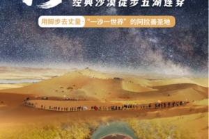 沙漠湖泊:徒步过程中会经过大小不等5个湖泊,有淡水湖也有咸水湖,恍如世外桃源。每年3月和11月的水鸟迁徙季节会有大量珍稀水鸟停留腾格里沙漠的湖泊中;每年5-6月沙枣花开,离很远就能被沙枣花的香味唤醒;每年5-6月,湖边大片马兰花盛开呈现给你一个沙漠的春天。
