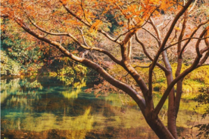 云栖竹径,四季皆是画意。春天,破土竹笋、枝梢新芽,一片盎然生机;夏日,老竹新篁,丝丝凉意;秋天,黄叶绕地,古木含情;冬日,林寂鸣静,飞鸟啄雪。行走在“一径万竿绿参天,几曲山溪咽细泉”的幽幽山道上,犹如潜泳在竹海碧波之中;这里有树龄千年以上的枫香树,树干三人合抱高近40米,是西湖著名古树。霜降后满树红叶如映日彩霞。