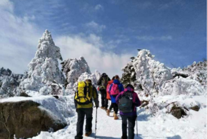 每年的十二月底至次年的二月初,正是浙西群山被白雪覆盖的季节,行走冰雪中,体验不一样的登山乐趣。冲顶马啸岭主峰太子尖,海拔1558米,大斜坡爬升冲顶,是华东驴友冬季徒步圣地。