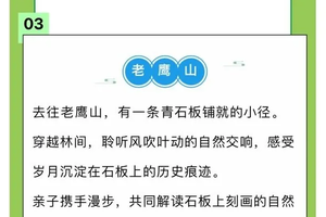 一、研学亮点 1、户外踏青,培养自然观察力与环境感知力 2、实地观察老山各种动植物,了解地质构造 3、培养认路识路能力,提升方向感 4、山路崎岖不平,培养耐力与协作能力 5、户外放松身心,提升亲子幸福感