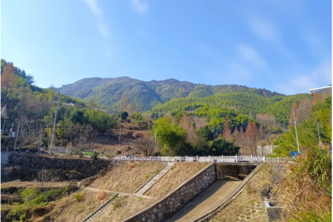 乌石铺就精古道,黄金山巅观云海。太平军驻大石屋,飞流悬瀑挂银丝。这四句话概况了章里古道的四大景点,乌石古道、海拔650米翠绿毛竹林中的黄金山、大石屋前自五十米高的悬崖上飞流而下的瀑布