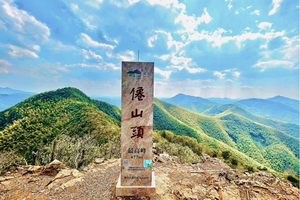 锅底山的攀登有些挑战,有一段较长的连续上坡路。到达山顶后,我们可以俯瞰南山竹海景区。过了山顶后,还有多次起伏的山脊线,其中有一处大石头有2米多的落差。