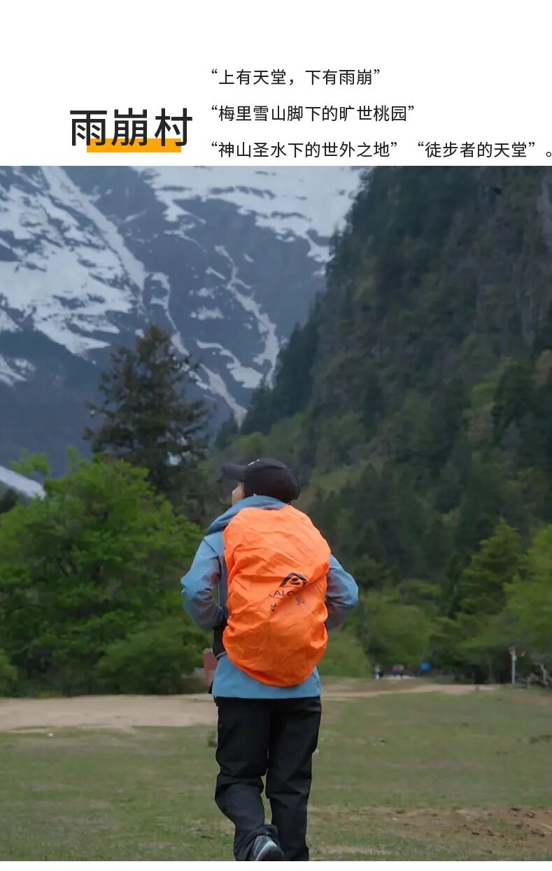 箱包:20-30L双肩背包(必备,雨崩徒步),建议携带30L的徒步包个人行李(可携带24寸拉杆行李箱跟车存放【不进雨崩村】),出雨崩可以拿到)。
