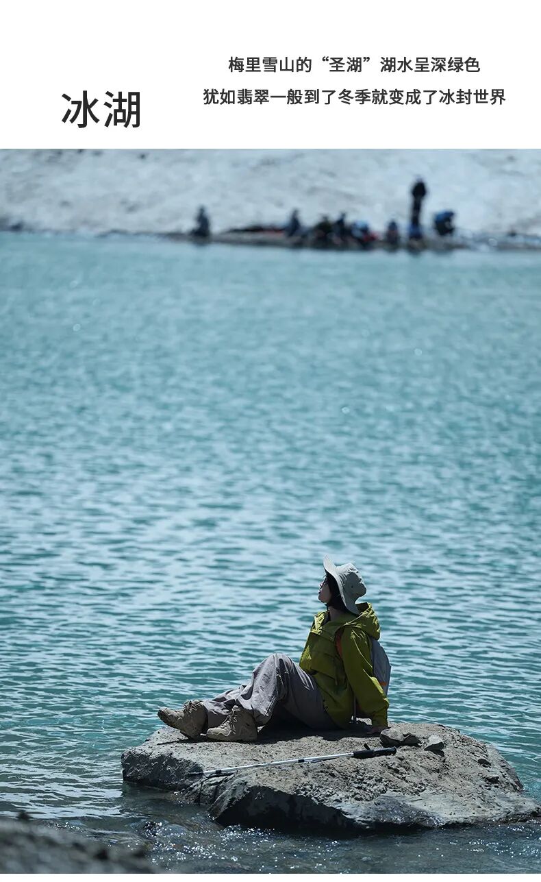 "在笑农大本营,享用美味的午餐,稍作休息,为接下来的旅程补充体力。继续前行,终于抵达冰湖,湖光山色交相辉映,宁静而神秘的氛围令人陶醉。最后,踏上归程,回到雨崩村,深入体验当地独特的民俗文化,感受浓厚的人文气息