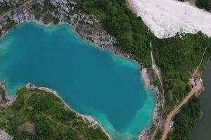 不同于山峰的草木丛生,矿坑有一股荒凉。一般开采完后,矿坑就被废弃了。而江南,总是不缺水的,经年累积,蓄满雨水,矿坑含有丰富的铜离子,一个个蔚蓝的阿戈摩托之眼诞生了。