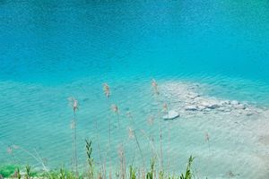 矿坑周围布满碎石,飞禽草木皆少,人迹罕至,湖水蔚蓝却可见底,湖底长满青苔,令人惊喜的是,居然有不少鱼群,俨然已经形成了一个小的生态系统。