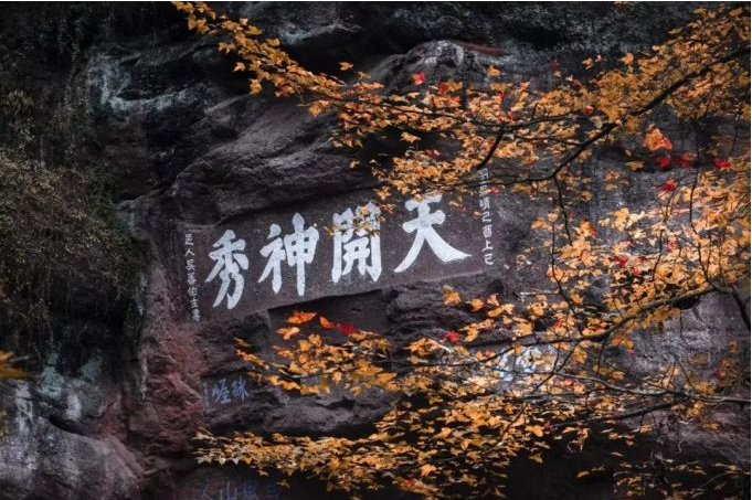 秋天的齐云山,云高气爽,红叶似火,山若赤壁,枫叶在丹霞地貌的衬托下愈发显得艳丽动人。