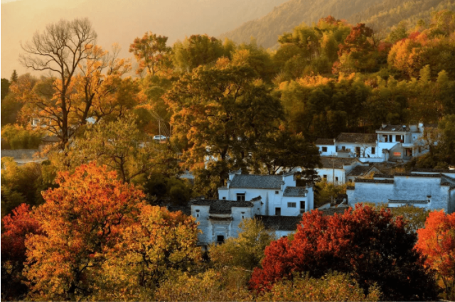 秋天一到,仿佛大自然打翻了调色盘,漫山遍野的乌桕树绿、黄、红、紫斑斓交错,再加上飞檐翘角、粉墙黛瓦的点缀,恰似一幅美轮美奂的风景油画,宛如世外桃源,被誉为 “中国最美的秋色” 之一,是游玩赏景、摄影爱好者的心仪之地。