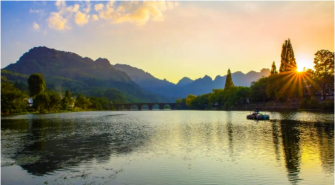秋天来齐云山,不仅能沉醉于秋的绚烂,还能邂逅横江秋水的温柔,游船拨开水面,横江秋水碧悠悠,站在步赢桥之上,阳光晕染了整个大地,金黄的秋叶倒映在江水之上,仿佛天空之境。