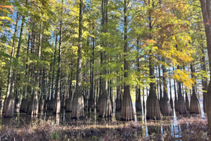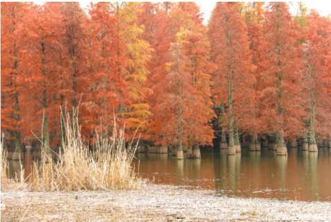 水杉适应性强,喜湿润且生长快,被大量投放到这里,再后来此处也修建了水库。人工种植加上大自然的馈赠,秋天的时候,这里展现了落羽杉独特的魅力,宛如仙境。