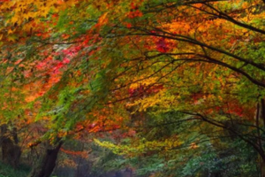 枫叶红到最浓烈时,眼睛根本无处安放,目光所及之处皆是层层叠叠。惊心动魄的红与黄,像上帝打翻的调色盘,还是精心搭配了色彩的那种。