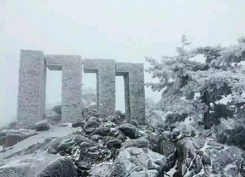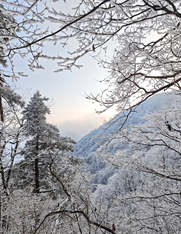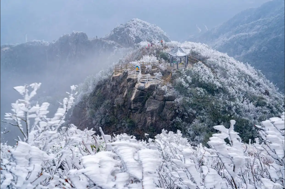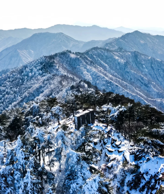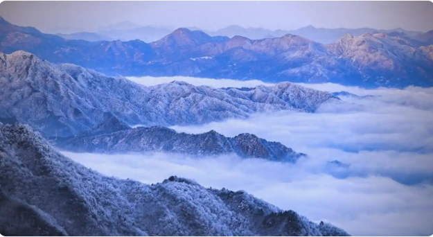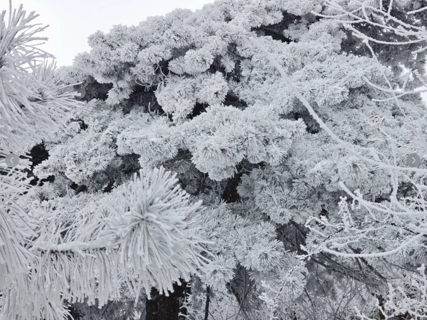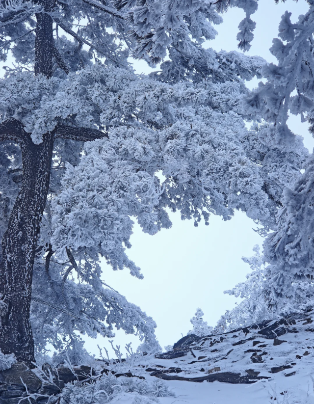 冬日的白马尖,银装素裹,冰挂、雾凇、雪松随处可见;放空晴日时,天之蓝、地之白,能把雪景、雾凇和云海全部美景收入眼底