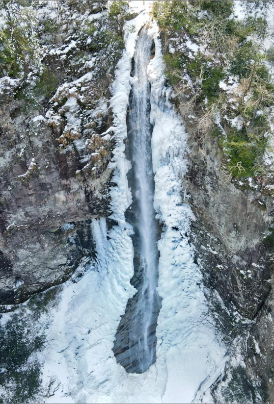 大别山主峰景区的龙井峡。这里是皖西最大的瀑布群,一到冬天,就变成了一个梦幻的冰雪王国!寒冬来临,瀑布被低温定格,变成了气势磅礴的冰瀑。其中有一处高近20米的冰瀑,晶莹剔透,傲然耸立,真的是超震撼!仿佛是大自然这位顶级艺术家精心雕琢的稀世珍宝,每一处冰棱、每一条冰柱都散发着独特的魅力。