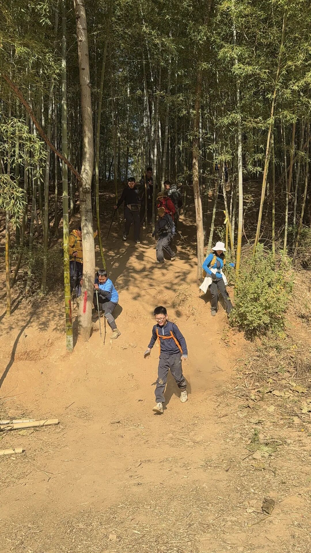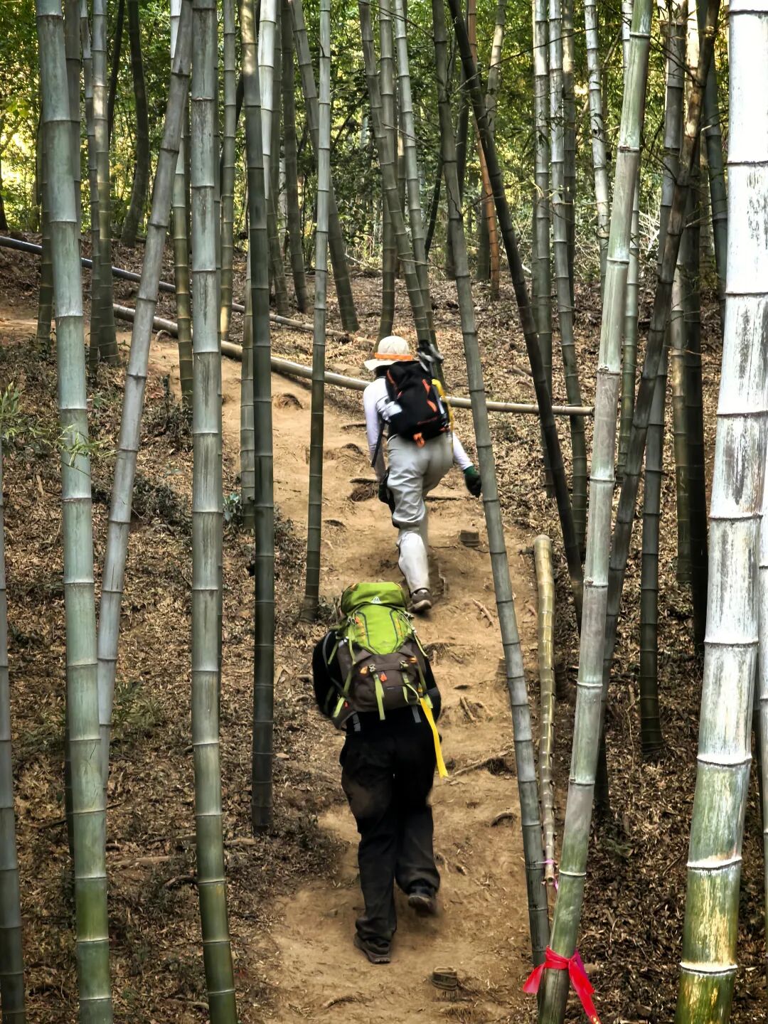 穿过密集的巨石区,便会进入幽静的竹林隧道。阳光透过竹叶的缝隙洒下斑驳的光影,在这里拍摄行走的剪影,能够捕捉到极具韵味的森系氛围。这段路程不仅是体能的休整,更是心灵的疗愈。