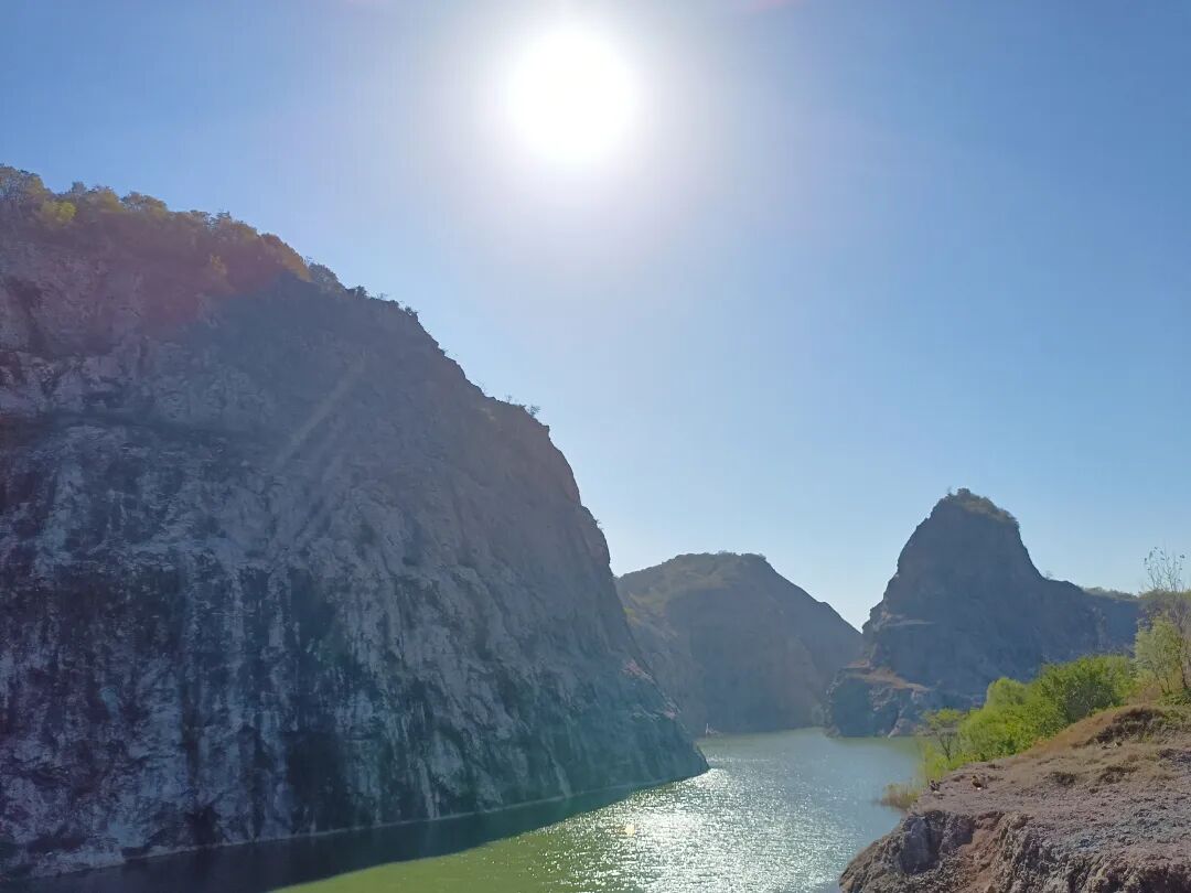 沿着山山凹山脊线行走,断壁残垣,生机和沧桑共存一览众山小,很是壮阔。一侧生机盎然。另一侧断壁残垣,寸草难生,又有一种沧桑感。”