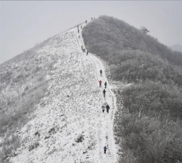 南京的一场雪刚完,又有一场悄然酝酿着,九连尖的雪山连绵起伏,仿佛是大自然的壮丽画卷。每一步行走都仿佛踏在云端,那种感觉,真的好像身处仙境之中。