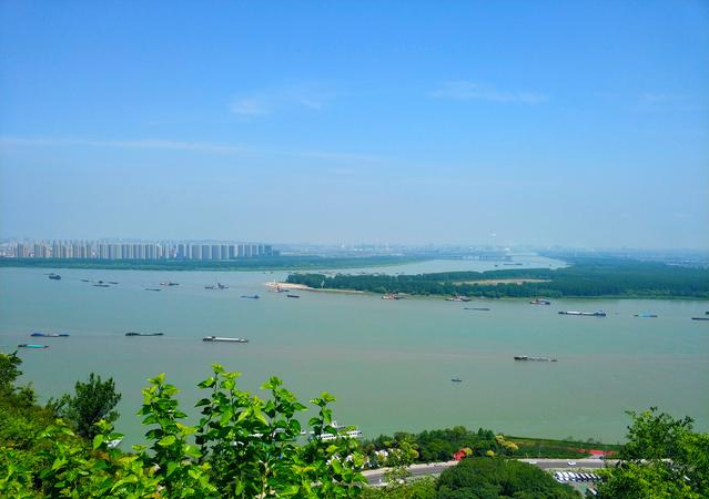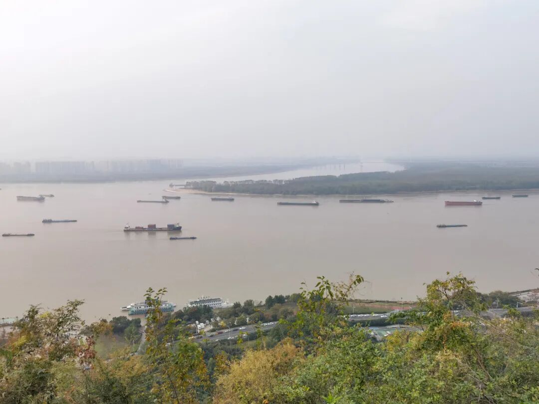 穿过幕府山的山脊来到观景台,可以远远地望见万里长江奔流东去,浩浩荡荡,尽收眼底。