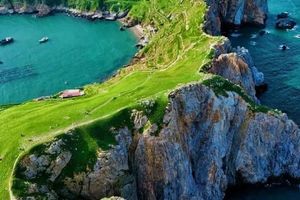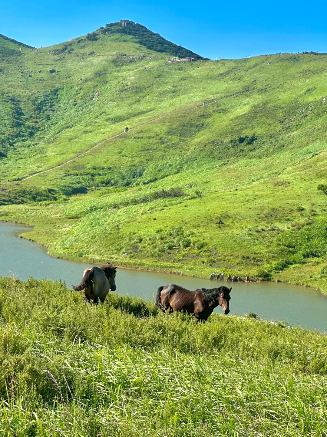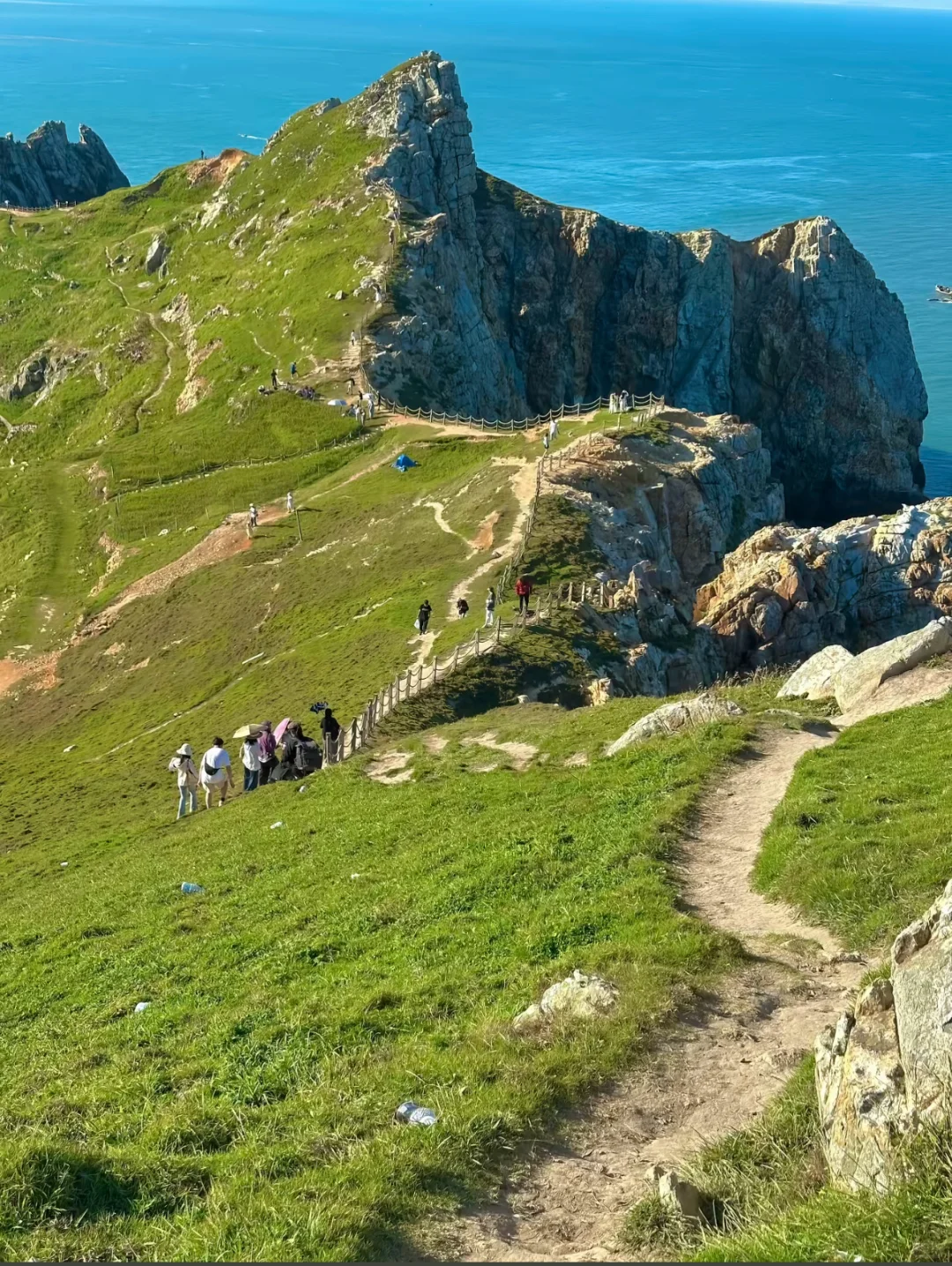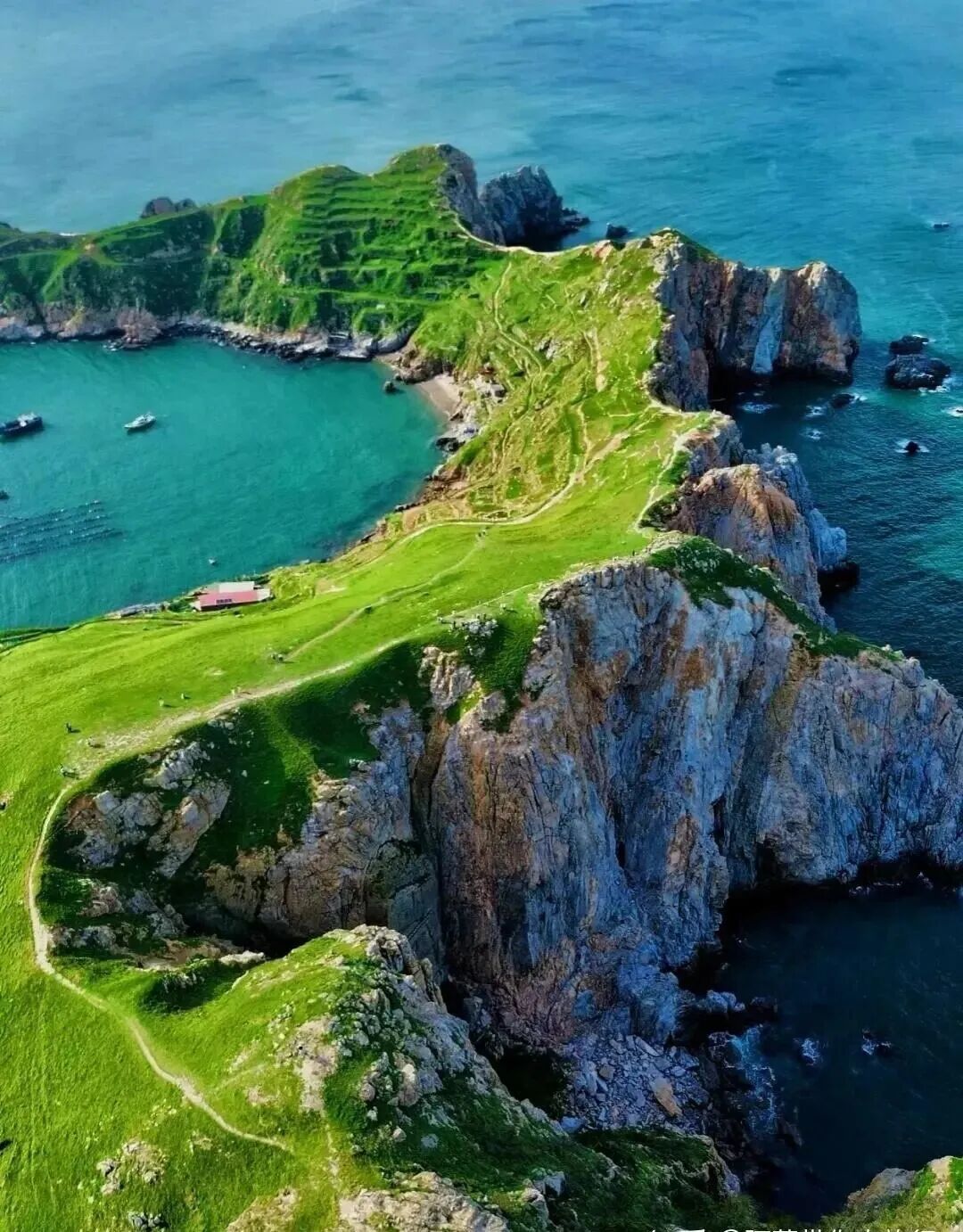 一半是海,一半是高山草甸,万亩草甸,湛蓝湖泊,蔚蓝海岸线,像是闯进了动漫里的梦境,一座岛把草甸和大海缝在一起!