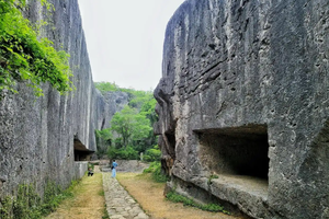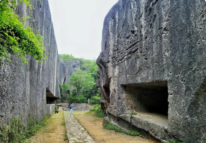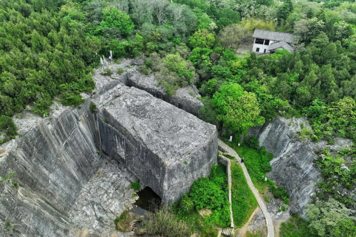 阳山碑材,位于南京江宁区,是一处鲜为人知却极具震撼力的自然与人文结合的景区,巨岩嶙峋、怪石嶙峋是阳山碑材最直观的视觉冲击。三块碑材分别代表碑座、碑身与碑额,每一块都重达千吨,却因运输困难而终未启用,成为历史的遗迹。如今,这些巨大的石材被自然所“收藏”,与山体融为一体,成为徒步爱好者与地质迷的宝藏之地。