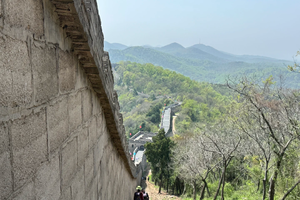 珍珠泉长城1995年建成,全长3000米,宽4.3米、台高9米,建有望月台、大风观、望江楼三座城堡。融合了江南的诗意秀丽,承载着古长城的大气磅礴。