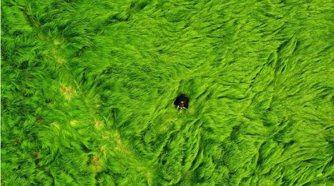 南京有一个绿油油的草海风景区,美得像宫崎骏画笔下的世界,被很多人赞誉“龙猫草原”。草的长势像海浪一般匍匐涌来,一眼望去翠绿欲滴,就像天气晴朗时,微微泛起涟漪的海平面。高空上俯瞰草海,像地毯一样柔密,像山坡一般翠绿。